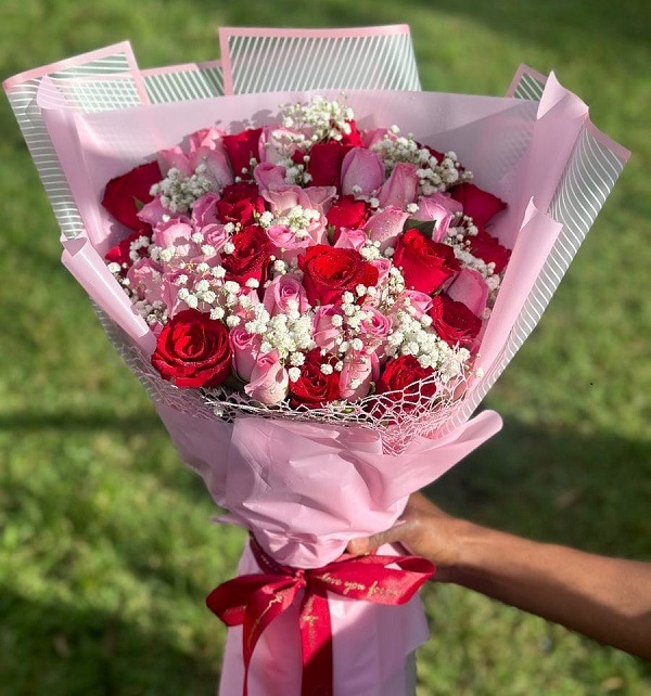 Delicate pink roses paired with baby’s breath for a soft and romantic touch. Ideal for sweet, affectionate surprises.